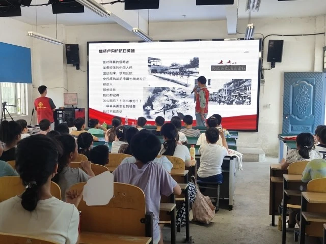 7月7日,志愿者们来到了朱疃小学,为这里的留守儿童带来丰富多彩的课程活动。上午,志愿者们为孩子们带来了美术课和书法课。美术课上,孩子们用手中的画笔描绘出心中美丽的世界。书法课上,志愿者们耐心地指导孩子们握笔、运笔,孩子们则专注练习。通过一笔一画,旨在让孩子们感受汉字书法的魅力,传承中华民族的文化精髓,感受中华传统文化的博大精深。这一天不仅是充满知识与欢乐的日子,更是一个值得铭记的历史时刻——七七事变纪念日。下午,志愿者们精心为留守儿童开展了一场深刻而生动的爱国教育课。通过生动地讲解和互动,孩子们了解了七七事变的历史背景及其重要意义。随后,志愿者们组织孩子们观看了爱国教育影片,向孩子们讲述那段沉重而英勇的历史,激发他们的爱国之情和民族自豪感。这一天的课程不仅丰富了留守儿童的暑期生活,还在他们心中播下了艺术与爱国的种子。志愿者们表示,将继续关注留守儿童的成长与发展,通过更多有意义的活动帮助他们开拓视野,增长知识,培养良好的品德和积极向上的精神风貌。