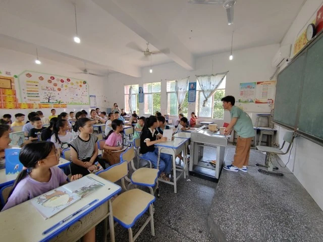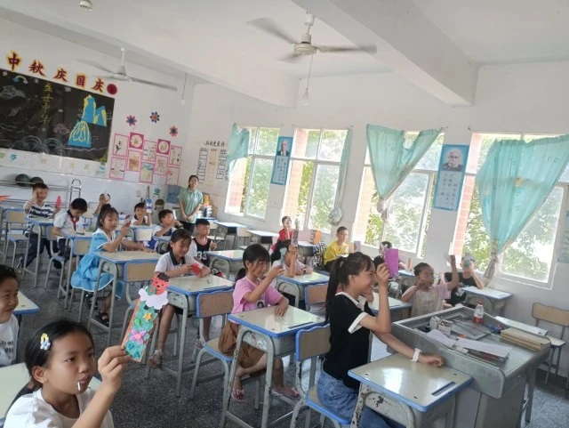 其次,我还被乡村孩子们的热情和好学精神所感染。在开班仪式上,他们纷纷举手提问,渴望了解外面的世界。他们的眼神中充满了对知识的渴望和对未来的憧憬,因此我们也进行了班级书签赠送仪式,意在让他们知道读书的重要性,激发他们对知识探索的积极性。