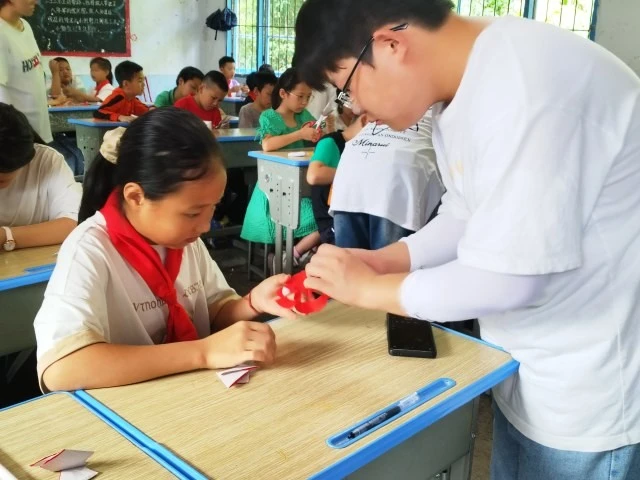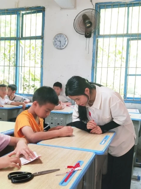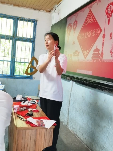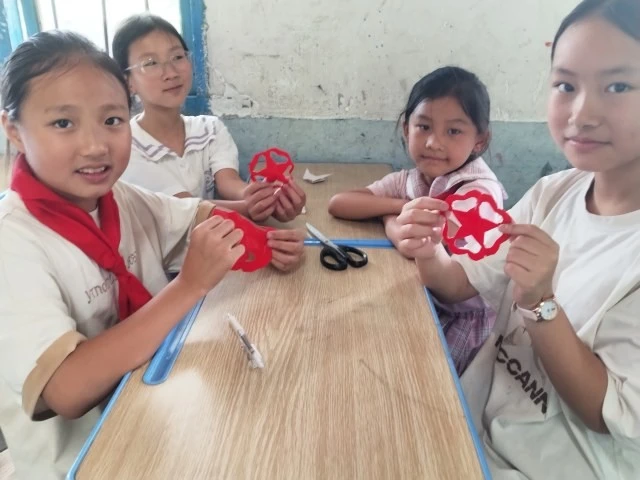 大学生网报铜仁7月10日讯(通讯员朱清艳)7月10日,铜仁幼儿师范高等专科学校国际教育系“向阳花开·青春助力”实践团在石阡县困牛山红军学校开设课程“非遗剪纸”向同学们传授非遗剪纸文化。剪纸,源自中国古老文化的艺术形式,以其独特的魅力和精湛的技艺,赢得了世人的赞叹与喜爱。剪纸艺术是中国传统文化的重要组成部分,它承载着丰富的历史和文化内涵。同时,随着时代的发展,剪纸艺术也在不断创新和发展,融入了更多的现代元素和时代特色。在未来的日子里,我们期待剪纸艺术能够继续发扬光大,为人们的生活带来更多的美好与惊喜。
