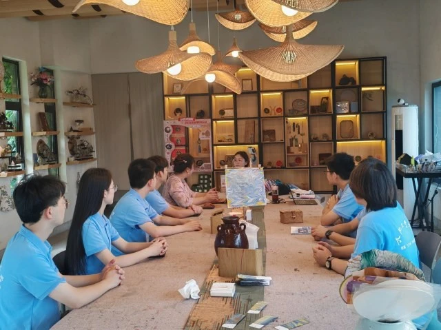 首先,团队成员针对“饺子”老师加入马郢创客的渊源与契机、非遗工艺的发展等问题对老师进行了采访。“饺子”老师在采访中说:在2018年作为游客参观马郢时,对于马郢这个地方只是一个乡村的基础印象。在2021年关于乡村振兴的调研当中,对于马郢有了更深一步的了解。其建设已经较为完善,运营相对平稳。这让她看到了宣传中国传统非遗工艺、推动美丽乡村振兴的契机。于是在结束一年半的调研后,“饺子”老师果断决定辞职创业,而她第一个想到的方向就是乡村振兴,这就为她2023年到马郢发展奠定下基础。