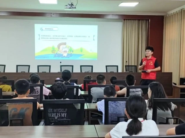 活动中期,实践队员通过生动有趣的讲座和演示,为孩子们传授防溺水的知识。讲述了游泳安全要点,教导孩子们正确的热身与准备活动,讲述了溺水后自救与互救方法,通过现场教学和互动问答的方式,让乡村儿童与家长更加直观地了解防溺水知识。课堂上,学生热切回答,反响激烈,纷纷表示要学好防溺水知识,守护自己与他人的安全。