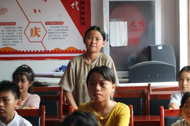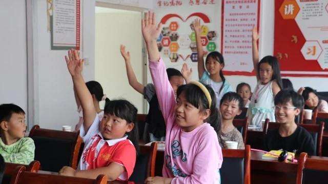 图为上课时小朋友们积极举手回答问题。大学生网报通讯员 张洁 摄