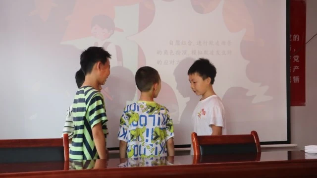 图为小朋友们演绎校园欺凌片段。大学生网报通讯员 张洁 摄