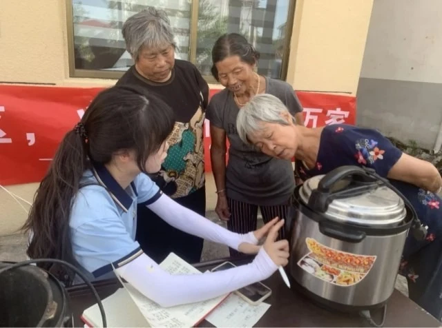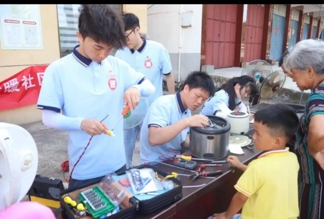 很快,便有村民向前询问,队员们热情地迎接了村民们,并且对村民们的相关疑问进行解答的同时进行宣传。在经过队员们的积极宣传后,很快便有居民们带着家中坏了的电风扇、烧水壶、电饭煲等家电找到了“红色工匠”暑期社会实践团,并希望队员们能够把坏掉的家电维修好。紧接着队员们仔细询问故障情况并进行登记,维修人员则根据登记信息进行初步判断,然后对物品进行检查和维修。对于无法当场维修的物品,告知居民需要进一步检测或更换零部件,并留下联系方式,后续跟进维修进度。