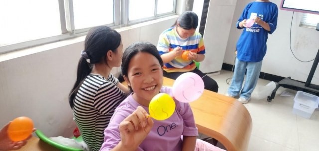 紧接着,徐则诚带领孩子们动手制作了由气球与铁签构成的“糖葫芦”。为了解释锐利的铁签如何穿破脆弱的气球而不使其爆炸,徐则诚向孩子们揭示了气压的秘密。徐则诚在课后表示:“这些孩子们还是非常好学的,希望我们开展的这些活动让他们真正地学有所获。”