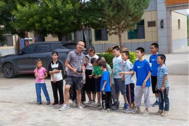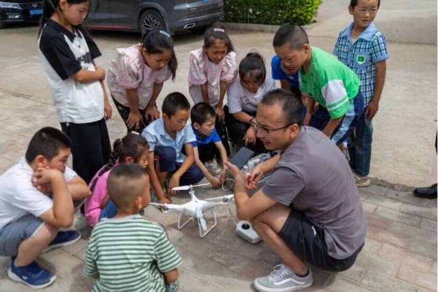 活动中,带队老师为留守儿童们开展无人机的科普并现场进行无人机试飞操作。同时,团队成员们组织了丰富多彩的活动并为孩子们送上学习用品和体育文具。