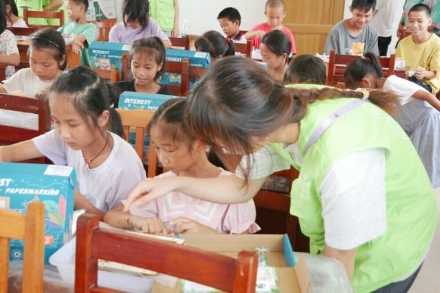 成员们开设安全教育课、心理健康教育课、剪窗花课、舞蹈课、造纸术等多样化的公益支教课程,对乡村孩子们开启艺术启蒙和文化传承教育,让孩子们感受中华传统文化的熏陶,为孩子们打造了一个“七彩假期”。
