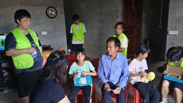图为践行团成员前往留守儿童家中并进行访问。大学生网报通讯员 李采芳 供图