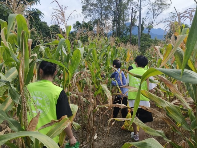图为践行团成员前往村民家中田地体验收获农作物。大学生网报通讯员 吴华强 供图