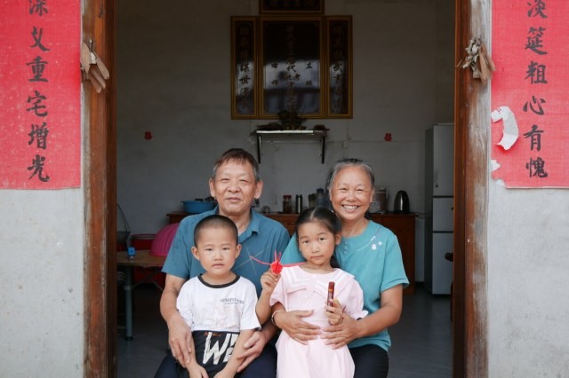 图为践行团成员们为村民拍摄的全家福。大学生网报通讯员 苏龙翔 供图