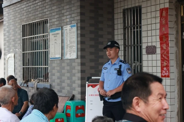 (图为派出所人员给村民讲解防溺水和防诈骗知识的照片 凡鑫摄)