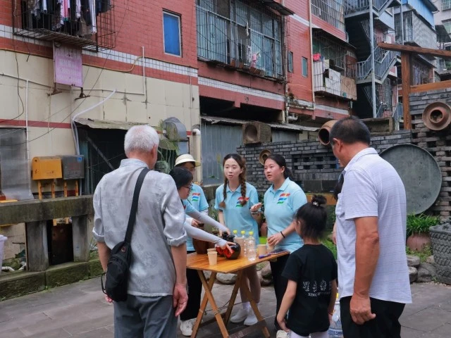 (图为万州区龙沙镇酒号公社负责人与服务队合照 凡鑫摄)