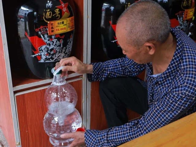 (图为万州区龙沙镇酒号公社招聘员工接酒照 凡鑫摄)