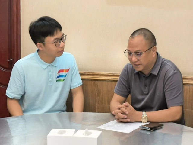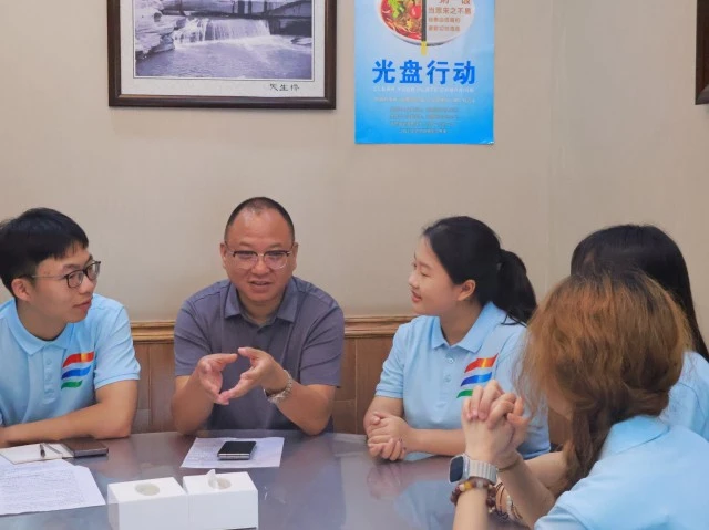 (图为队伍成员徐梦圆采访周大林总经理 郭怡婷摄)