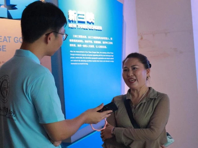 场馆内,正在参观的一位女士正是三峡移民成员中的一份子,她为我们讲述当时面对移民时的不舍、支持与自豪的复杂情感,从中成员们感受到了这份“舍小家,顾大家,为国家”的牺牲奉献精神,也看到了国家与人民的双向奔赴。
