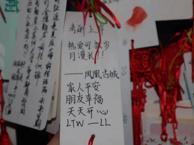 在参观完故居后,团队跟着解说员到休息区休息,队员们发现墙上写满了密密麻麻的祈愿祝福,例如希望学业成功、家庭幸福。在与讲解员的交流中成员们得知,中国传统文化祈福与社会团结、和谐共处紧密相连。祈福不仅是个人愿望,也是集体希望的体现。通过沈从文故居,人们将共同的幸福追求和美好生活以书面形式表达出来,在为自己寻求心灵庇护的同时,也激励了他人努力奋斗。
