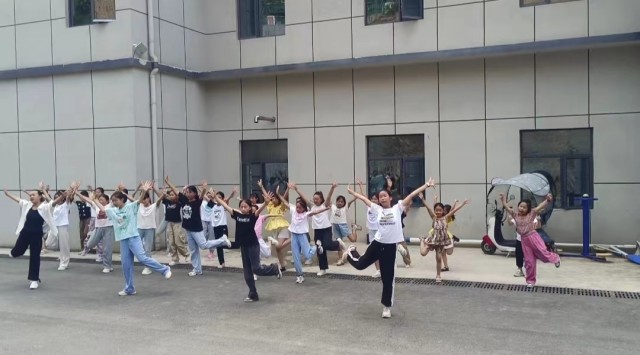 支教团志愿者崔佳艳和张琦琦,伴随着音乐 一个动作一个动作的教学生,悉心指导每一位学生。孩子们在课堂上积极参与,展现出了对舞蹈的浓厚兴趣,他们的进步令人欣喜。