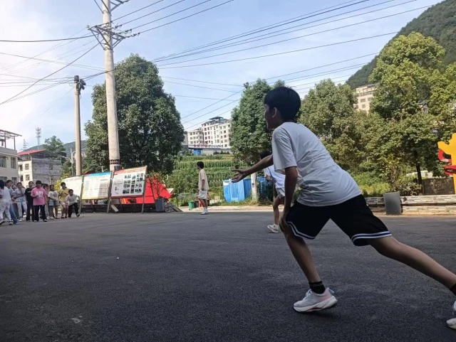 在体育课堂上,志愿者熊老师以及龚老师等带领大家跑步热身。随后,志愿者老师们安排当地学生进行接力短跑比赛,按照男女、年级分为了多个队伍。即使骄阳当头,烈日炎炎,学生们挥洒汗水,完全沉浸在体育运动的快乐之中。体育运动的小游戏完成后,课堂步入正题。各位志愿者老师拿出运动器材篮球,首先龚老师为大家做运动示范和讲解,随后老师随机抽取两位同学检查动作是否规范,在完成了基本的理论 讲解后开始带着同学们进行实际的指导。当地学生两两组队相互接球,抛球等多种动作的练习。