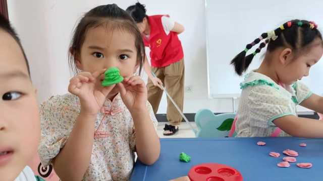小手工课上,队员们将材料分发给孩子们,细致地讲解制作步骤和技巧。孩子们聚精会神地聆听,随后迫不及待地动手实践。他们用彩色卡纸折出形态各异的千纸鹤,用黏土塑造出充满创意的小摆件。在制作过程中,孩子们相互交流、帮助,不仅提高了动手能力,还增进了彼此之间的友谊。