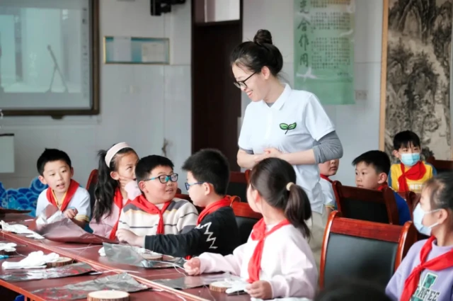 为深入研究非遗文化浸润下乡村校本课程的在地化开发策略,我非常有幸加入曲阜师范大学马克思主义学院“梦栖山野,踏梦追风”实践队,于7月10日与队员们一起前往山东省潍坊市寒亭区杨家埠小学开展调查活动。这是小学生放假前的最后一天的课,但学生们的兴趣不减。在校本课程教育课上,当教师谈论非遗文化时,可以看到这充分调动了学生上课的积极性。他们可以举出自己亲眼所见的例子,并表明自己的想法;可以讲述许多“民间传说”的故事,甚至比教师所说的更生动、更具体。还有学生饶有兴趣地描述了“民间火脸谱”,他们用自己生动的描述感染了在场的所有学生。在激烈的讨论中,学生们表现出对非遗文化的强烈兴趣。在学校的专门教室里,实践队员们有幸亲手体验了年画的制作过程以及风筝、灯笼扎制过程,感受到了教师们充分利用当地非遗资源的决心,用心雕琢每一个教学细节、用心教学生的精神风貌。