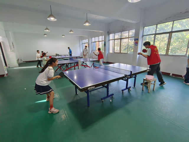 乒乓风采,激情四溢。乒乓球是一项全身运动,能够锻炼反应能力、协调能力和身体素质。通过挥拍击球,可以有效锻炼到身体的各个部位,如手臂、腰部、腿部等。长期参与乒乓球运动,不仅可以提高身体的灵活性和协调性,还能增强心肺功能,促进身体健康。乒乓球比赛中需要运动员在极短的时间内做出准确的判断和反应。这种高强度的思维活动,能够锻炼孩子的专注力和反应能力,对于提高学习效率、应对日常挑战都大有裨益。乒乓球比赛中,输赢乃常事。孩子们在参与比赛的过程中,能够学会面对失败和挫折,学会调整心态、积极应对。这种经历能够锻炼孩子的意志品质,增强他们的抗挫能力,为将来的生活和工作打下坚实的基础。我们不仅可以享受到运动的乐趣,还能让身体更加健康。在折纸活动后,志愿者们带领孩子们在乒乓球室内进行运动。从基本的握拍姿势、发球、接球等技巧开始教起,确保他们掌握正确的基本功。准备一些有趣的游戏和互动环节,让孩子们在轻松愉快的氛围中掌握乒乓球的基本技巧。在教授的过程中,志愿者们会根据每个孩子们的特点和进度,灵活调整教学方法,让他们能够在轻松愉快的氛围中学习并且鼓励孩子们多练习、多尝试,让他们在实践中不断提升自己的乒乓球水平。在不停地练习中,孩子们逐渐掌握要领,在游戏中玩得不亦乐乎,很开心与志愿者们一起打乒乓球。