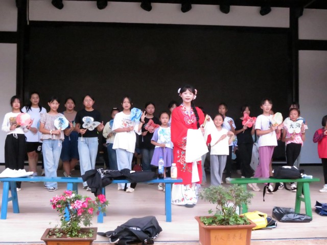 紧接着,志愿者带领同学们走上者湾村古老的戏台。戏台不仅是一个表演场所,更是一个文化符号,它以独特的魅力渲染着国粹京剧的学习氛围。同学们在这片文化沃土中,深刻感受着京剧的艺术精髓。戏台上,志愿者悉心教授《梨花颂》和《江城子·密州出猎》这两部经典剧目。在他们的指引下,同学们不仅学习了京剧的唱腔,更领悟到了其中蕴含的深刻底蕴。孩子们的声音虽然稚嫩,但每一句唱词、每一个手势都透露出对京剧艺术的尊重与热爱。这场奇妙的体验,不仅让同学们领略到了京剧的无穷魅力,更激发了他们对传统文化的热爱与尊重,为京剧的未来传承与创新注入新的活力。