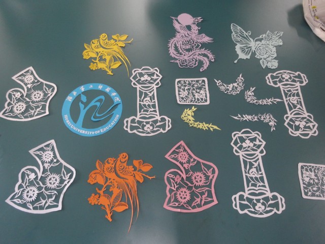 队员们都十分好奇老师所展示的一幅幅作品,色彩浓烈、图案繁多,我的眼神一刻也不想离开这些新奇的事物。我深深地为我们中国古代劳动妇女的智慧、创造力所折服。在白天那么繁重的劳动情况下,还能利用空闲的一时间做出那样精美的剪纸作品。“他们的生活是贫苦的,但精神上确是如此的富足精神。”曹小琴老师也是由衷的感叹道。特别是看到库淑兰老人的作品,当先了解到库淑兰是一位生活较为艰苦的普通劳动人民,见识到她本人所创作的一系列风格构图大胆、色彩艳丽、人物形象饱满的的作品,实在是不禁让人感叹艺术来源于生活,她用绚丽的纸片,剪下她痛、碎、忍的一生,剪出“剪花娘子”的一生。