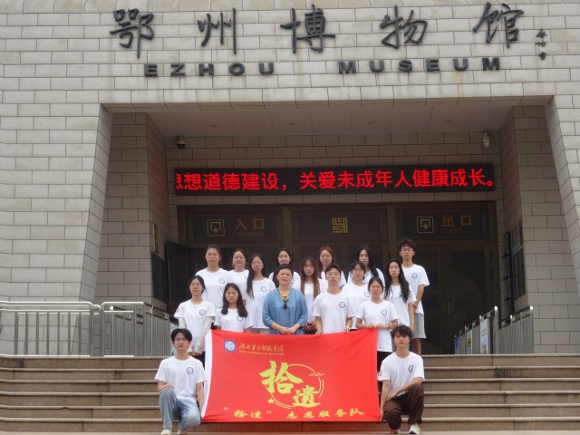 大学生网报鄂州7月10日讯(通讯员:容菲)为了传承和保护非物质文化遗产,增强新时代青年对非物质文化遗产发展的认识以及重视,7月6日,湖北第二师范学院“拾遗”志愿服务队的同学们踏上了三下乡的征程。我们的目的地是历史悠久的鄂州,一个充满文化底蕴的城市。在这次活动中,参观鄂州博物馆成为了我们行程中最为期待的一站。