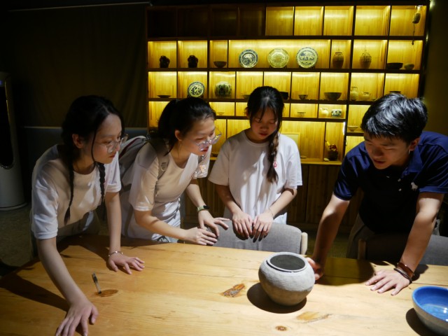 图五为实践团成员了解古陶瓷罐