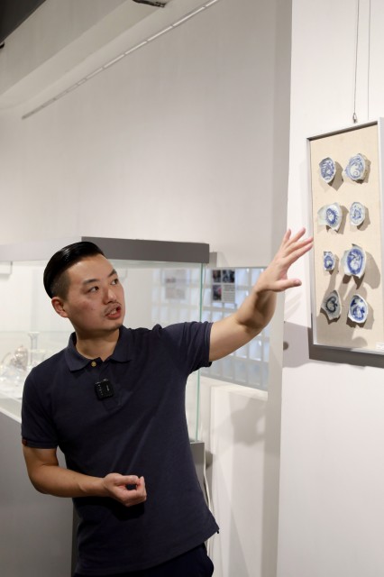 图一为陶艺人章晨讲解古瓷片