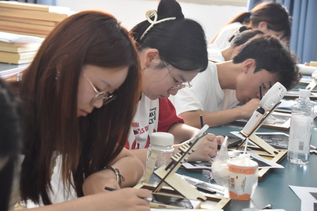 团队成员专注的雕刻雕花剪纸。大学生网报通讯员 王曼昕 供图