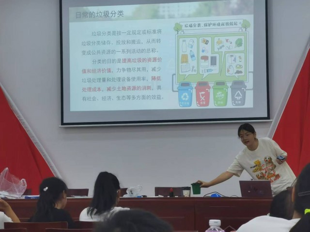 首先,志愿者们介绍了环境保护的重要性以及每个人在保护地球家园中的责任。他们通过讲述具体案例,如海洋垃圾问题、森林砍伐的影响等,让孩子们认识到环境问题的严重性及其对人类生活的深远影响。接着,志愿者们详细讲解了如何进行垃圾分类,解释了可回收物、有害垃圾、厨余垃圾和其他垃圾的区别,并现场展示了不同种类垃圾的正确投放方式。孩子们在轻松愉快的氛围中,通过问答互动加深了对垃圾分类的理解。