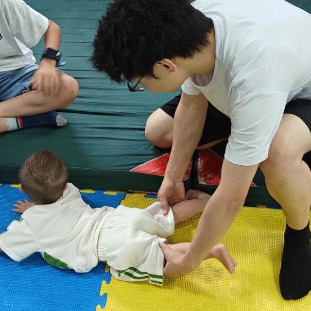 实践队员们到达康复中心后,分成了两个小组分别负责物理治疗和运动治疗。在物理治疗室,医生给实践队员教授了如何使用理疗设备并观察设备数据,在治疗过程中,实践队员为受治疗的儿童讲了一些童话故事,并告诉她们要认真接受治疗。在运动治疗室,医生们先对儿童的手臂、腿部和头部进行了按摩治疗,然后指导实践队员该如何对儿童进行运动康复治疗,比如辅助儿童进行站立和蹲下锻炼她们的四肢协调能力,用扔球去撞击儿童锻炼她们的平衡能力。最后,实践队员完成了今日对儿童的治疗并鼓励她们要积极面对生活,同时感谢了医生对儿童的悉心帮助并打扫了这两个科室的卫生。