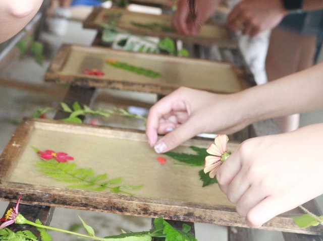 图为队员在制作花草纸 通讯员 宁晨 供图