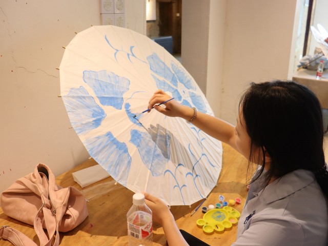 图为队员正在绘画油纸伞图案 通讯员 王琦婧 供图
