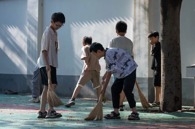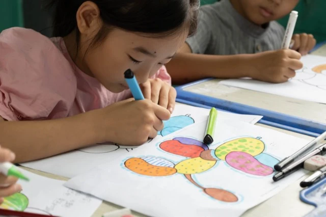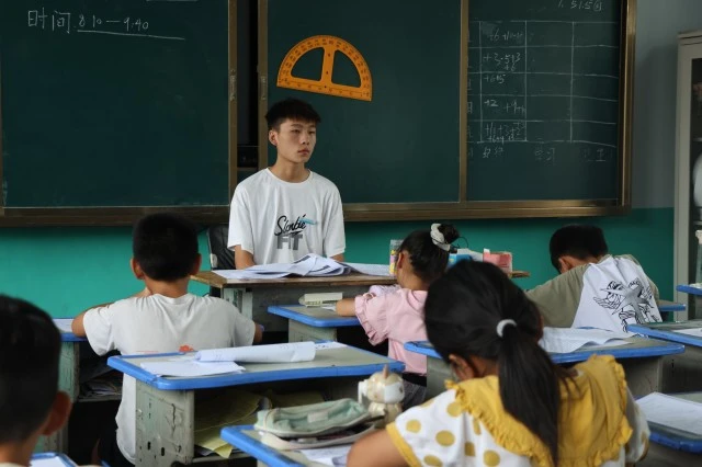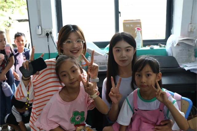 图为支教队员带领观音堂小学学生展示美术课作品。本次活动历时15天,28位成员分两小队开展。支教活动以助推乡村美育教育为宗旨,以美术绘画为主要授课内容。在课上,孩子们发挥无限的想象力和创造力,通过画笔和颜料创作出属于自己的艺术作品。在书法课中,孩子们学习了硬笔和毛笔书法的基本技法,感悟到中国传统文化的魅力;在文化课中,孩子们为新学期的学业进行了预习准备;在音乐课中,孩子们在欢乐的歌声中感受到音乐的魅力;在体育课中,他们锻炼了身体,体验到团队合作和竞争的乐趣;在美术赏析课中,支教服务团的成员们则给孩子们介绍了中国古代的传统名画,传播了传统文化,弘扬了民族精粹。此外,支教服务团的成员们还担任了班主任,担负起照顾小朋友们生活的责任,每天中午给小学生们分配餐食。