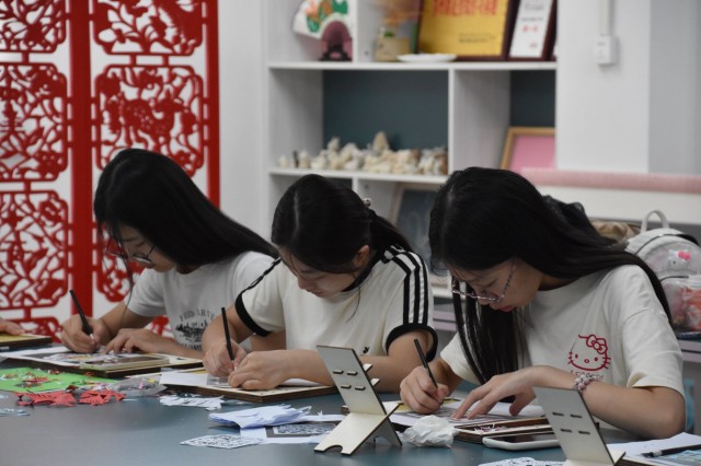 鄂州7月10日讯(通讯员 訚冬)7月10日,湖北第二师范学院“拾遗”暑期三下乡志愿服务队来到鄂州市吴都小学学习剪纸雕花的第四天。为了进一步磨练雕花剪纸技术,更好地传承非遗技术,省级非物质文化遗产传承人曹小琴老师悉心指导团队成员的相关作品制作,不断完善团队成员的作品。此次实践学习,让团队成员的剪纸技术显著提升,同时精神世界也更加富足。