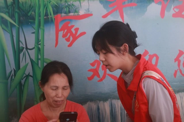 图为当地居民配合队员填写问卷 大学生网报通讯员 许恒嘉摄