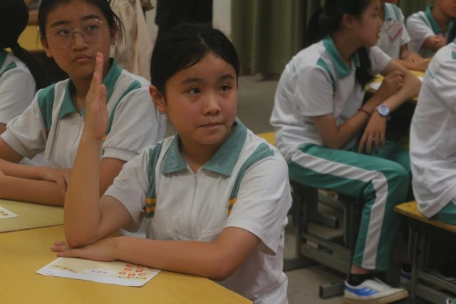 图为小朋友在课上举手发言 大学生网报通讯员 吴舒昕摄
