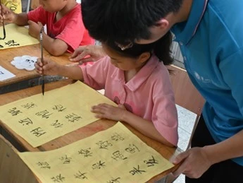 巢湖学院赴江西省抚州市三溪乡社会志愿服务团队深入乡村,开展书法教学活动。小朋友们手握毛笔,跟随志愿者学习书法,一笔一划间感受中华文化的独特韵味。活动不仅教授书法技巧,更传递了中华文化的深厚底蕴,激发孩子们对传统文化的热爱与传承之心。