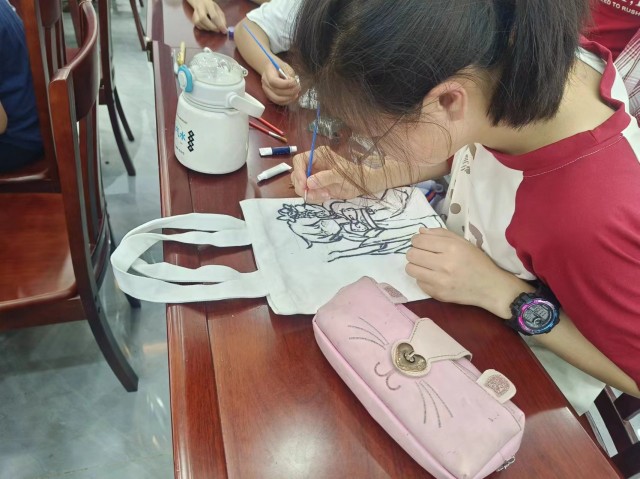 在志愿者们的耐心指导下,孩子们迅速投入到创作中。他们发挥着无限的想象力,先用铅笔在帆布包上勾勒出自己心中的图案轮廓,然后大胆地运用颜料进行填充和描绘。有的孩子画上了自己喜爱的卡通形象,有的则描绘出家乡的美丽风景,还有的将对未来的美好憧憬融入其中。