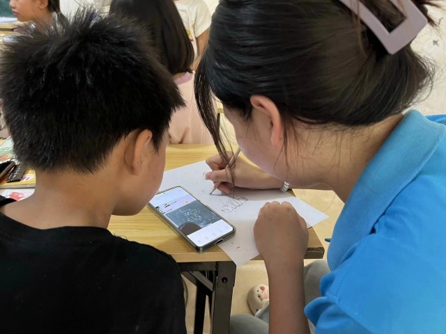 7月13日上午,为了消除队员与小朋友之间的陌生感,队员们特地开展了绘画课,这不仅是一次艺术的探索,更是队员与孩子们心灵对话的重要起点。志愿者通过做演示,讲解绘画的步骤,激发了孩子们的绘画兴趣。