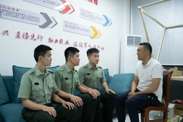 团队退伍大学生对滁州市退役军人村干部乡村振兴致富带头人杨伟进行访谈。他表示,“在部队里奉献了8年,回到地方依旧要发光发热,小岗村以前没有这样的产业,我就来弄,为乡村振新,技术振新添一份力。”之后,老班长向我们询问部队的近况,我们也都一一回答。