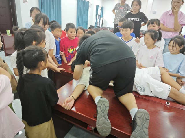 最后,志愿者老师还给同学们展示了溺水急救等生活救援技术。
