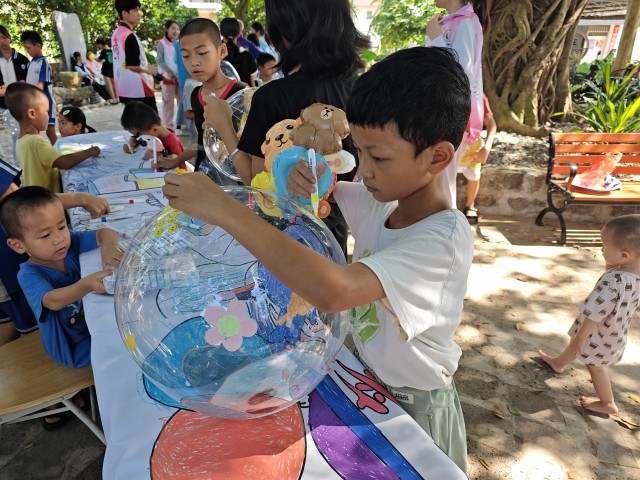 活动精彩纷呈,文化自信植根童心。队员郑晓莹引领孩子们穿越历史长河,在古建筑照片前,程浩恒等小朋友争相竞答,家乡记忆跃然心头。陈梓仪与孩童共绘气球,色彩斑斓间绘就家乡美景,童心共筑爱乡情。张晓敏、林夏舒携手铺展五米长卷,梦想与色彩交织,绘就未来希望。苏丽华颁发奖品,表彰守护传承的小卫士,程炜小朋友依依惜别,期盼再聚。实践队员与孩子们的笑脸,共同编织了文化传承的美好篇章。