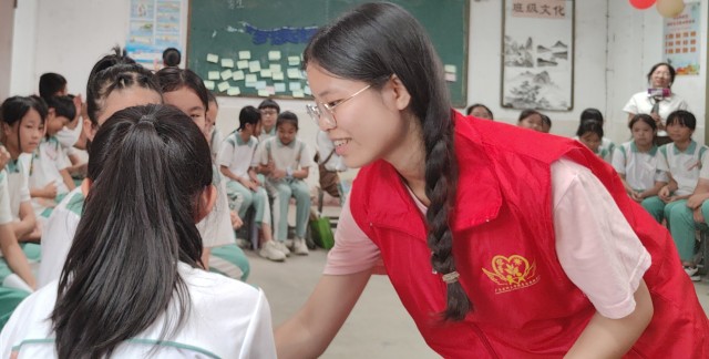 图为服务队队员聆听学生们分享自己的结营感想。通讯员吴舒昕 摄