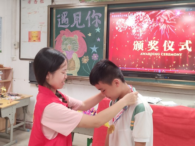 图为服务队队长为表现优秀的学生颁奖。通讯员吴舒昕 摄