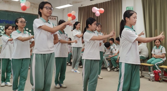 图为学生代表们表演潮韵操。通讯员佘李洹 摄