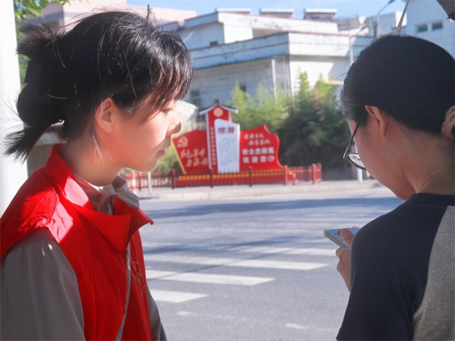 图为服务队调研部队员在下乡地点附近进行采访调研。 通讯员许恒嘉 摄
