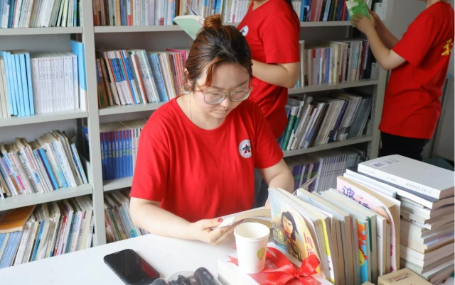 图为团队成员在图书室阅读书籍 通讯员 潘晓晨 摄